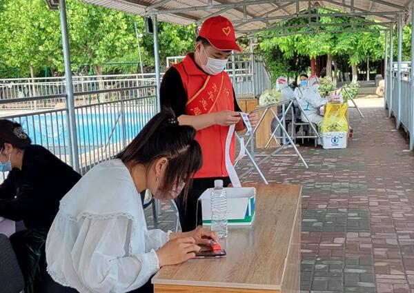在常态化疫情防控中,志愿者们在各自的社区中积极展开活动,在工作人员的安排下开展各项志愿服务工作。李子讯同学在现场引导群众有序排队,保证人与人隔一米距离,核酸检测现场井然有序。周晓杰、李玉静、孙佳文和杨文杰同学主动帮助居民扫码登记信息、解答居民疑问,有效缩短了居民等待时间,用心用情用力助力全民核酸检测“加速度”。张子豪、李俊佳和其他参与志愿服务的同学则在社区中积极宣传疫情防控知识,助力当地疫情防控工作。