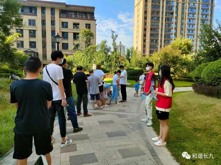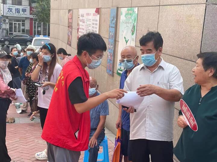 刘启云同学在当地疫情爆发之后,便自觉积极参与到当地的社区疫情防控的志愿工作中。每天早晨五点到达核酸检测点,有序做好摆桌搬凳、准备物资、划分区域等各项工作,为区域大规模核酸检测提供了有力保障。引导居民有序排队,清点人数,进行二维码检测,提醒居民佩戴好口罩,保持安全距离,协助医护人员对大家身份信息进行登记,以便更快地完成社区防疫任务,为社区平安稳定贡献自己的一份力量。