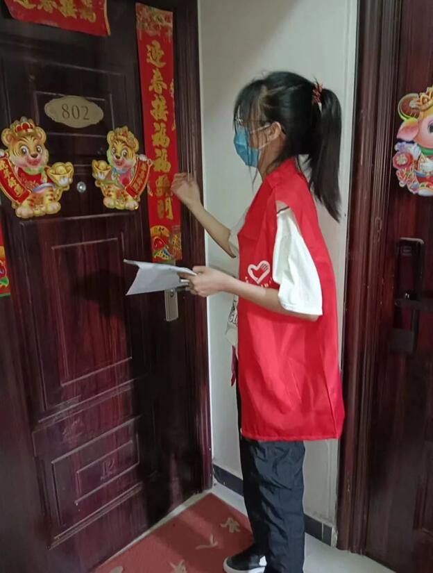 周芮颉同学还尽心尽力地宣传疫情防控知识,和其他志愿者们一起精诚合作,耐心地为社区居民讲解科学防控的相关知识。社区居民对她的评价是“她不仅是一名出色的志愿者,也是一位细心的小朋友”。