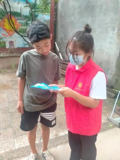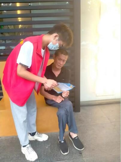 实践队员们深知有效切断疫情扩散蔓延渠道,就必须把社区这道防线守住。为此他们进入居民社区、商铺、主流干道等人流量较多的区域,派发防疫宣传单,将“三个重点”、“四早”、“四应四进”、“五个到位”传递给居民,耐心为人们讲解国内疫情现状、疫情常态化下社区如何防范、怎样正确保持卫生等知识,认真开展入户疫情防控赋能宣传工作。