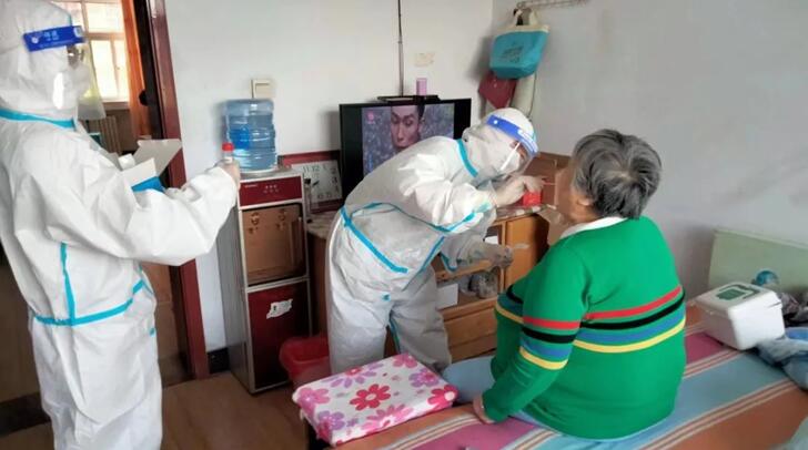 4、他们协助医护人员做核酸。维持现场秩序,为村民登记信息,指导村民核酸顺序。