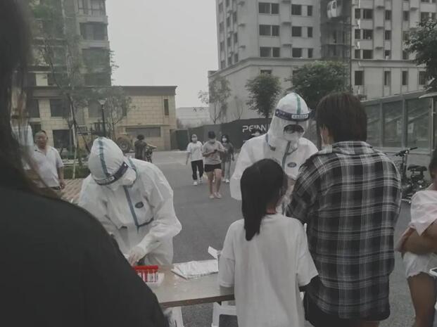 在疫情防控形势严峻的情况下,刚返乡的王啸天同学主动请缨担任起信息登记员,统计社区采集核酸信息,有序维持核酸检测秩序。每次到采集核酸的时间,他都会耐心提醒社区居民做核酸,并协助社区医护工作者为居民采集核酸。这是他第一次穿上防护服,成为一名“新手信息登记大白”,尽管穿着密不透风的防护服,汗流浃背,他依旧保持着耐心,为每一位前来的群众提供帮助。面对腿脚不好的老人,他主动上门帮助其采集核酸。