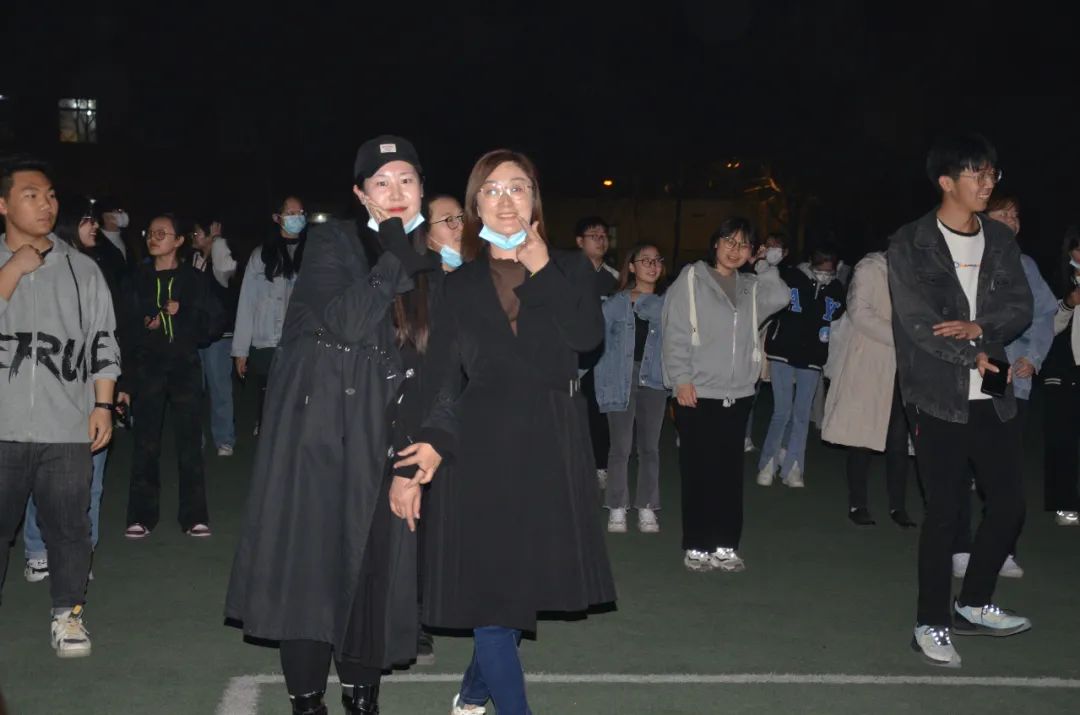 此次活动由于录、王峥老师作为示范教师,参加活动的还有周玉妹、蒙翠平、张跃也、王莹、宋旭等各位老师。伴随着优美的音乐旋律,同学们跟随老师一起跳舞律动,并吸引了越来越多的师生参与其中,大家边唱边跳,尽情欢乐。