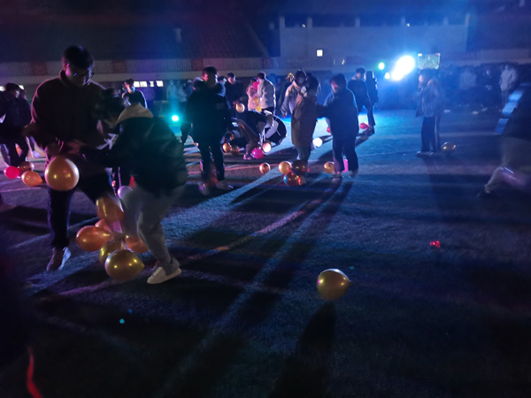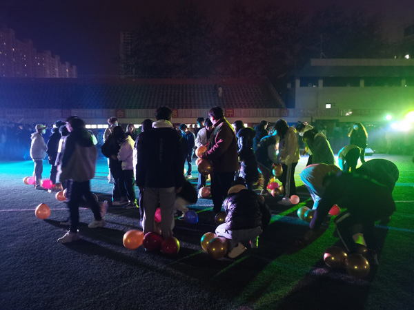 活动间隙同学们还进行了与老师互动的游戏,大家在活动中大家分成小组,团结协作,不仅仅带来了欢乐,更是培养了大家共同协作攻克难关的精神。