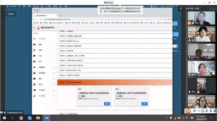 2022年9月20日,太阳成集团tyc122ccvip软件工程系对公司课程体系建设工作中的《软件质量保证与测试》和《软件测试技术应用》两门课程建设情况组织了学习交流会。本次会议特别邀请了测吧(北京)科技有限公司项目总监王雪冬、HR刘华、高级测试开发工程师陈杰和李旭与太阳成集团tyc122ccvip软件工程系的系主任张波、副主任韩冰还有专职教师赵云平、申晓旭和赵丽平老师进行了交流与学习。