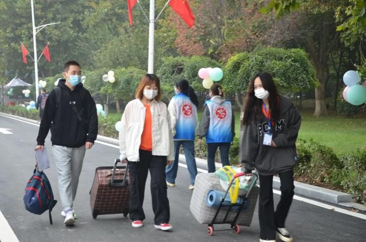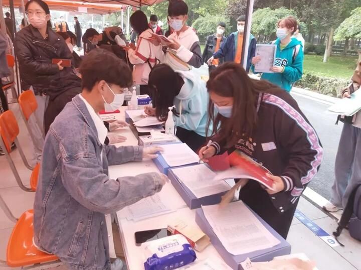 穿过了繁华的街道,学长学姐引领新生前往报到处报名,大家都有礼貌并且很有秩序的排队。听着指挥进行报名填写资料,进行登记,分宿舍领取钥匙,暂别家乡,穿越山海,奔赴而来。