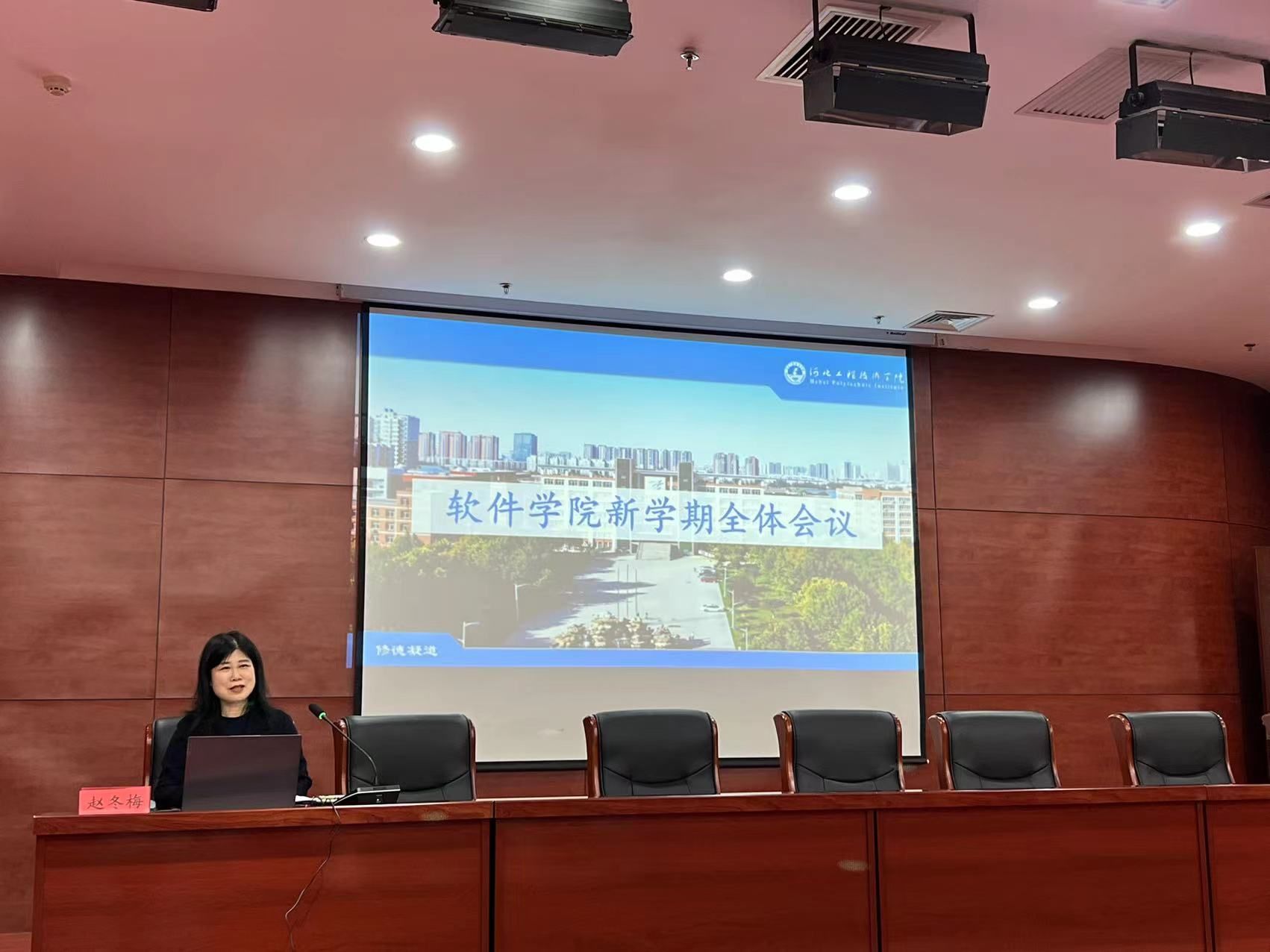 2月24日上午,太阳成集团tyc122ccvip在图书馆会议中心报告厅召开太阳成集团tyc122ccvip新学期全体会议。太阳成集团tyc122ccvip经理赵冬梅、教学副经理刘翠焕、张波以及公司全体教职工参加了此次会议。会议由办公室主任孙香宁主持。