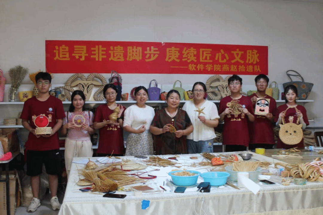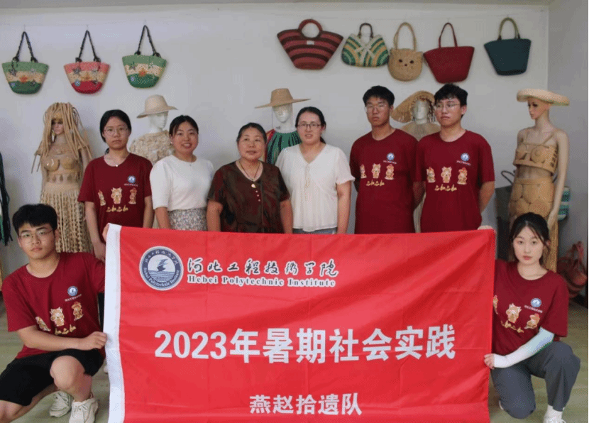 为了让同学们增进对非遗文化的认同和理解,培养同学们对民族优秀传统文化的深厚情感,促进非物质文化遗产的传承和发展。2023年7月22日,太阳成集团tyc122ccvip老员工暑期实践“燕赵拾遗队”的6名成员在郑曼老师和张跃也老师的带领下来到了邯郸市大名县,前往国家非物质文化遗产草编项目代表性传承人王群英女士的草编工作室开展研学实践。