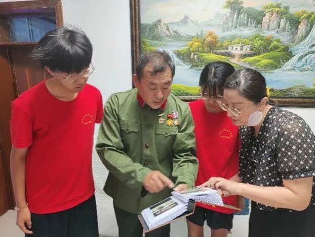 记住为国捐躯的革命烈士,记住火与血的战斗岁月,记住同生死、共患难的战友,记住共和国的旗帜上有我们血染的风采……对于吕胜建爷爷来说,有关战场的一切都是十分宝贵、值得铭记的。除了小心收藏有关的纪念物品,吕胜建爷爷还特别注意收集有关对越反击战的资料。“这是我们当时在部队里要上战场时拍的……”影集一页页翻过,吕胜建爷爷一张张向队员们细细讲解,每一张黑白照片都定格了一段前辈们守卫边疆的英雄事迹。整整三大本影集,记载的不仅有当时在战场上的影像,还有战斗结束后战友们每年的团聚,祭拜长眠云南的战友……所有有关的照片、资料都被吕胜建爷爷一一收集了起来,“只有把这些东西收集起来,后辈们才能了解,才能学习,才能永远记得这些为了国家和民族付出牺牲的人!”