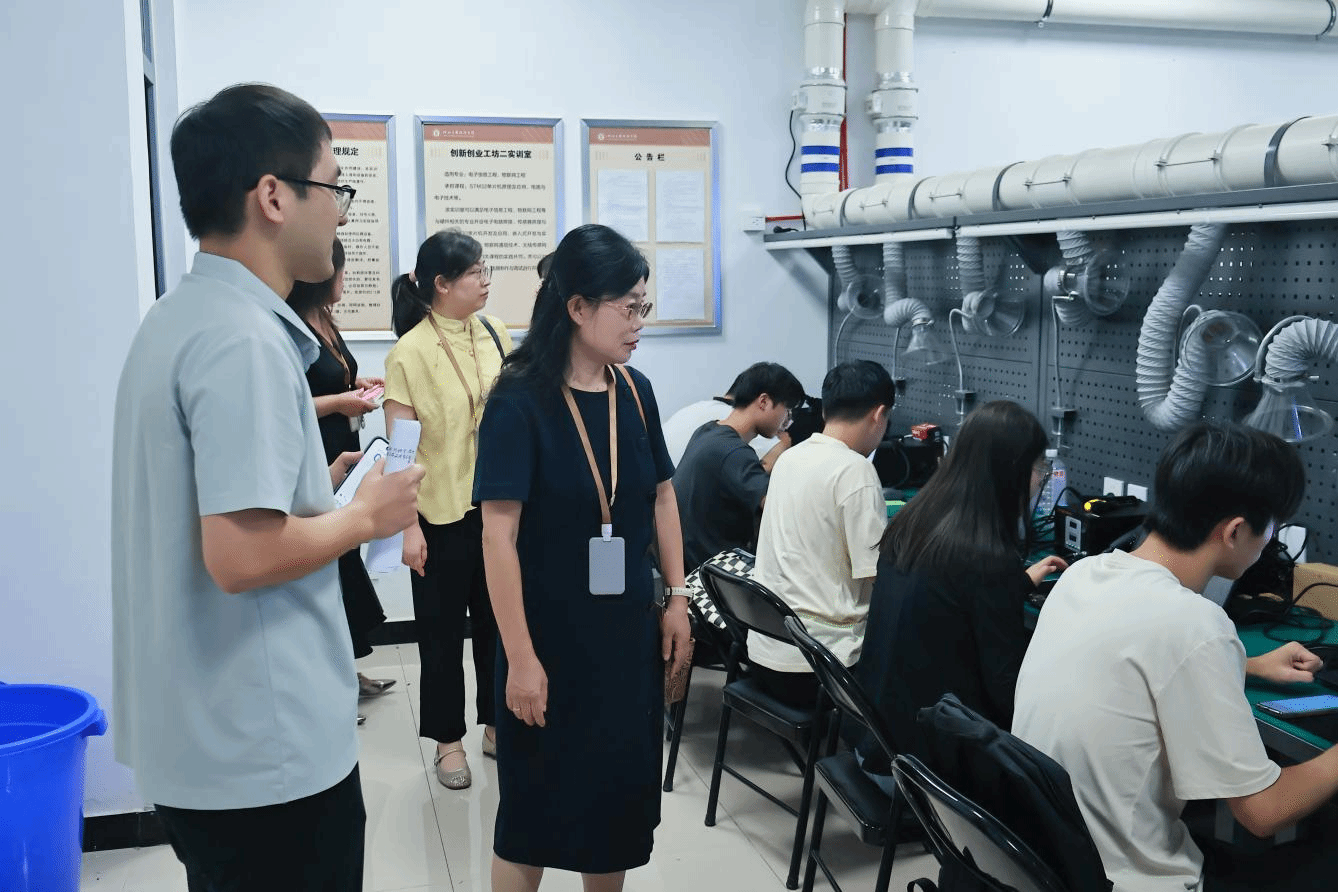 随后,赵经理一行还实地查看了灵寿校区的实验室与机房教室,重点检查了实验设备的运行维护、教学设施的配备使用情况,与现场管理人员交流校区教学资源调配、安全管理等工作细节,强调要以高标准保障教学需求,为师生营造安全、高效的教学环境。