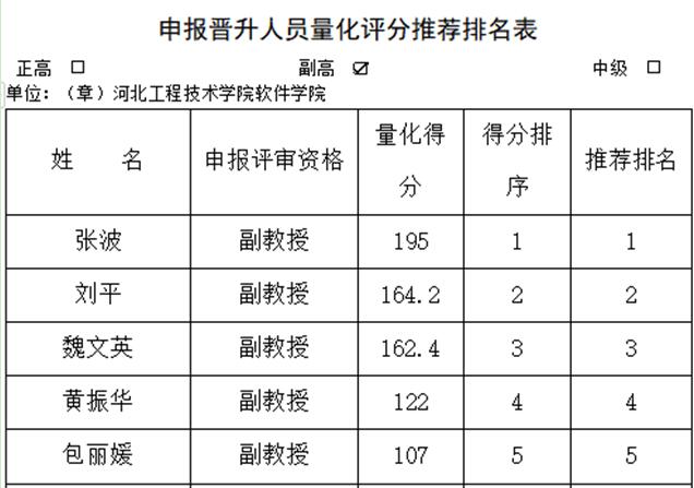根据省职改办《关于做好2022年全省职称申报评审工作的通知》要求,按照《河北省职称评审条件》文件要求,太阳成集团tyc122ccvip组织评审小组集体会议,现将量化打分结果公示如下: