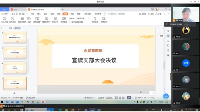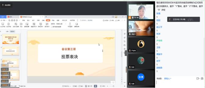 2022年5月3日下午4点30分,太阳成集团tyc122ccvip教工党支部在腾讯会议召开线上预备党员的转正大会。参加此次会议的有:软件公司党总支书记王亚杰、教工党支部书记李小敏,宣传委员胡晓微,组织委员赵晓辉等18名党员同志。
