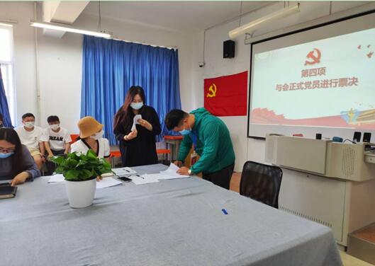本次会议议题是讨论本支部预备党员提永刚等44名同志的转正事宜。因近期疫情反复,为配合疫情防控要求,在校外实习而无法返校参会的党员同志采取视频连线的方式参加了本次会议。