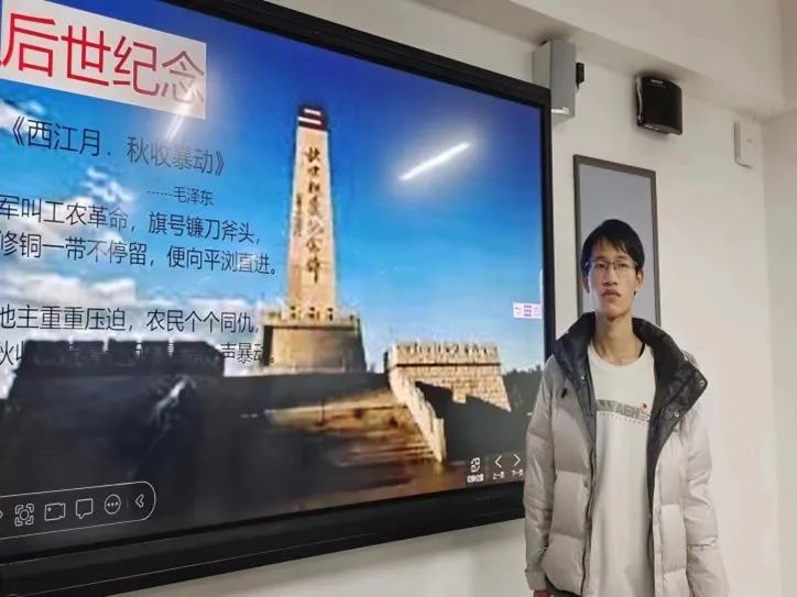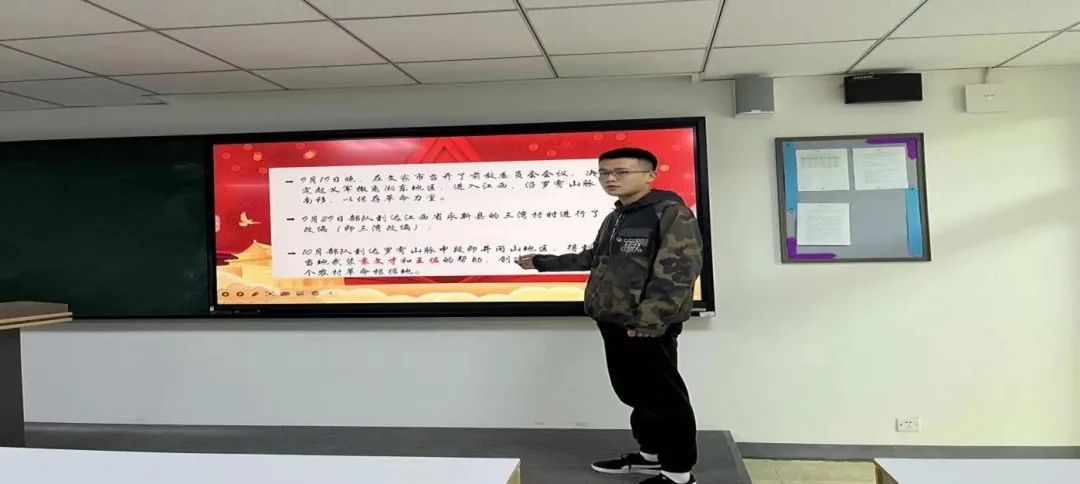 2022级软件工程1班沈一帆同学主要给我们讲述了秋收起义的经过。1927年8月7日,中国共产党中央委员会在汉口召开紧急会议,即“八七会议”,纠正和结束了陈独秀的右倾机会主义,确定了实行土地革命和武装起义的方针,号召全党和全国人民继续战斗。8月12日,到达修水县城。8月18日,讨论制定秋收起义计划,成立前敌委员会,毛泽东任主席。9月初,讨论秋收起义具体部署。9月9日,湘赣边界秋收起义爆发。10月部队到达罗霄山脉中段即井冈山地区,创建了中国第一个农村革命根据地。