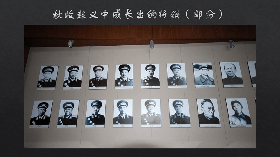 22级网络空间安全1班白少霆主要介绍了秋收起义的领军人物并放出了这些英雄人物的照片,元帅:罗荣桓;大将:谭政;上将:宋任穷、黄永胜、陈士渠、陈伯等;中将:张令彬、杨梅生、谭冠三、谭希林等;少将:李贞、龙开富、王耀南。
