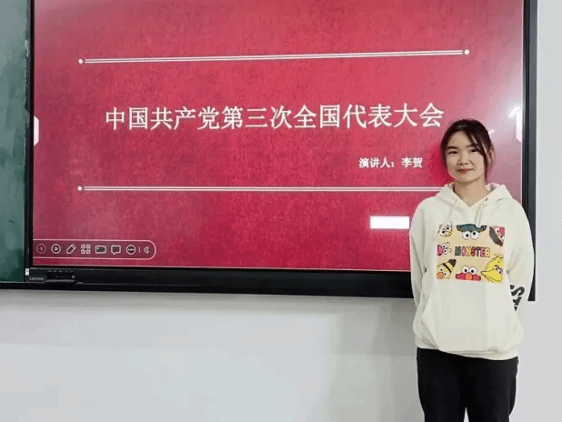 2022级软件工程1班李贺同学介绍了党的三大结束的当天,代表们来到黄范岗烈士墓前,在瞿秋白同志的指挥下高唱国际歌。同时中国共产党第三次代表大会,在雄壮有力的国际歌声中胜利闭幕了。