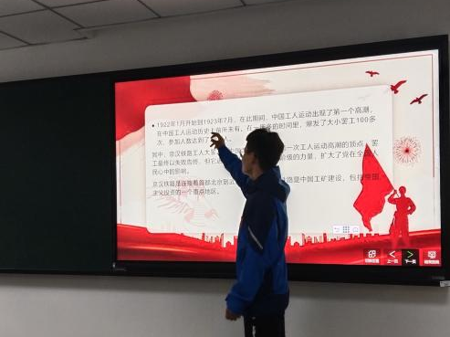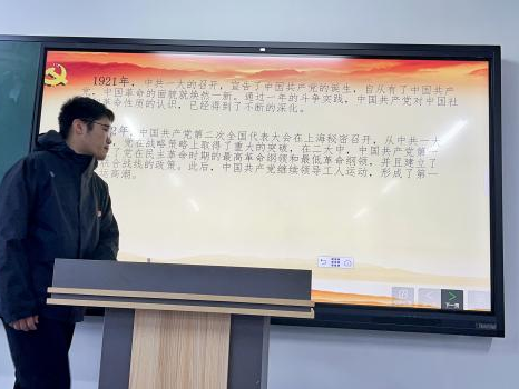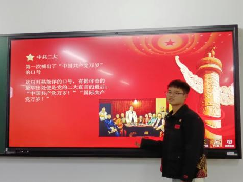 软件工程1班的郝旭鑫同学讲到中共二大第一次提出了明确的反帝反封建的民主革命纲领,从党的一大确定直接搞社会主义革命,到二大确定首先进行民主革命然后再进行社会主义革命,这是中国共产党人第一次从中国的国情出发制定的民主革命纲领,解决了当时迫切需要解决的中国革命的战略问题。网络空间安全2班的刘淦同学通过讲述于1922年5月1日至6日在广州举行的第一次全国劳动大会,引出了工运高潮的发生。