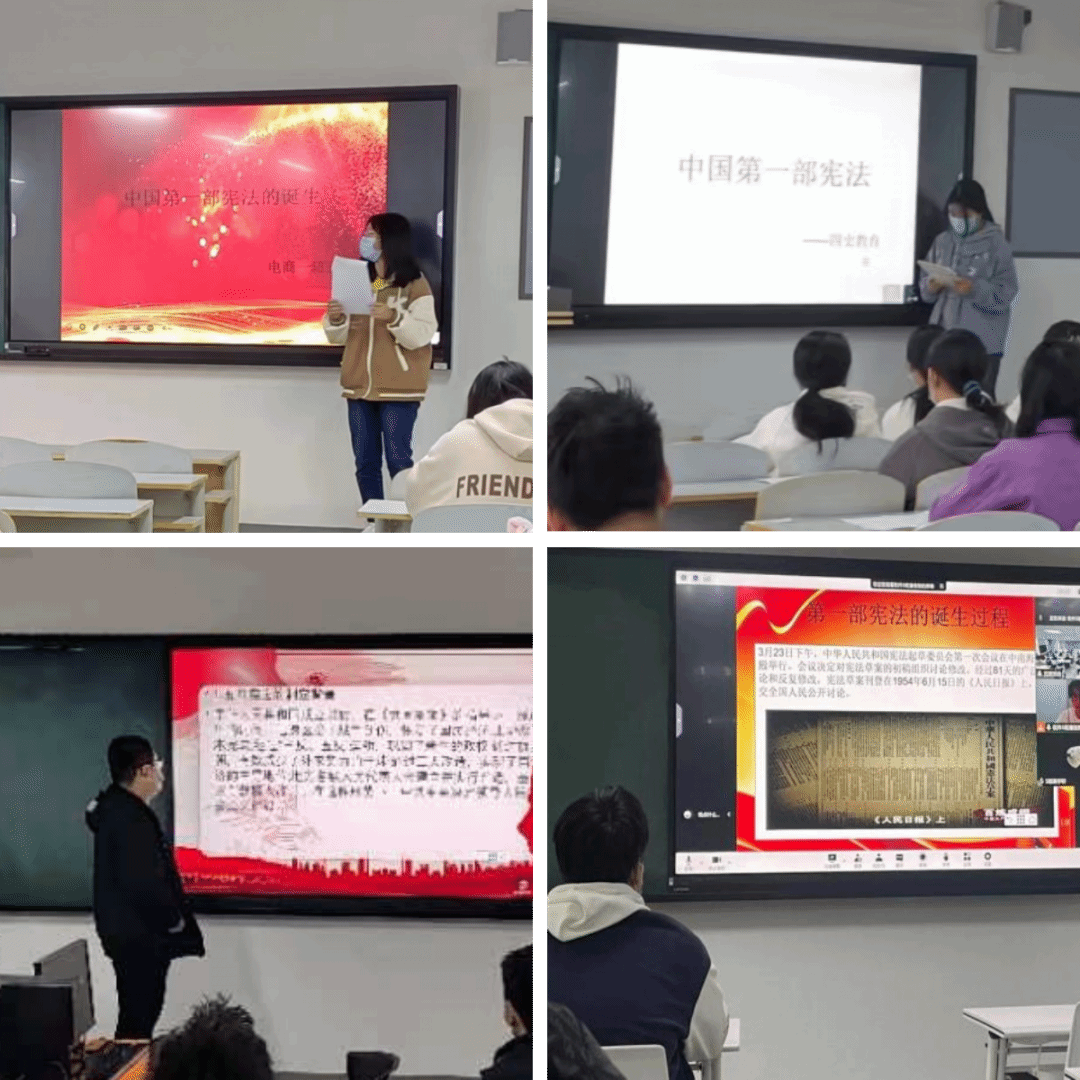 为丰富校园活动,引导员工成长,公司开展以新中国第一部宪法的诞生为主题的四史专题教育,在张跃也老师的指导下,电子商务1班、电子商务2班、软件工程4班、软件工程5班和软件工程6班的同学们积极踊跃地发表了激情四射的演讲。几位同学在演讲前做了充足准备,站在台上侃侃而谈,利用自己精心制作的ppt,为同学们深刻讲解新中国第一波宪法的诞生。