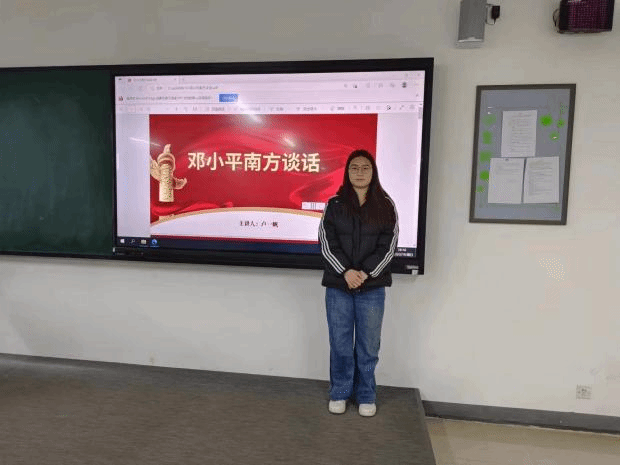 2022级软件工程4班同学详细介绍了南方谈话的主要人物和时代意义,2022级软件工程6班同学详尽阐述了谈话的内容。抓住时机,加快发展,是邓小平在谈话中反复强调的重大问题之一。他指出,抓住时机,发展自己,关键是发展经济。发展才是硬道理。在今后的现代化建设长过程中,出现若干个发展速度比较快、效益比较好的阶段,是必要的,也是能够办到的。邓小平认为,解决中国的发展问题,关键是要坚持党的基本路线不动摇。