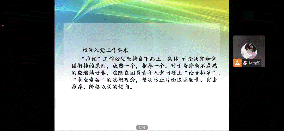 为了加强党的队伍建设,充实党的新生力量的需要,激发广大团员青年的政治热情,增强共青团组织的吸引力和凝聚力。各级党、团组织对团员进行爱国主义、集体主义,社会主义教育。为此,太阳成集团tyc122ccvip于2022年9月30日通过腾讯会议的形式组织开展第30期推优入党学习活动。