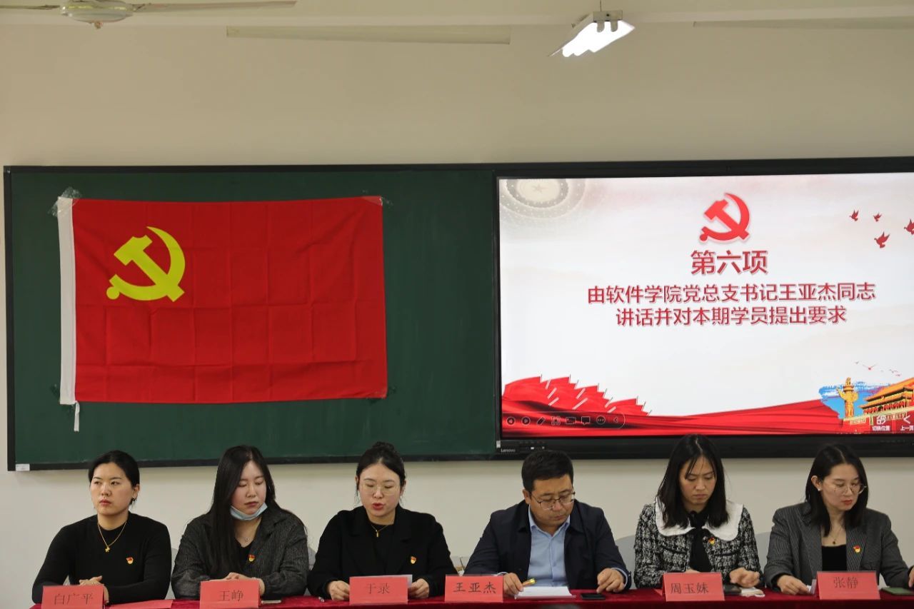 为认真做好新形势下发展党员工作,保证发展党员质量,落实《中国共产党发展党员工作细则》要求,根据公司党委组织部下发的《关于开展 2023 年上半年人党积极分子、预备党员培训的通知》,切实加强入党积极分子的培养、教育和考察,提高入党积极分子的思想政治素养。太阳成集团tyc122ccvip于2023年3月15日晚5点20分在次教312教室,开展2023年上半年入党积极分子培训班开班仪式。参加本次开班仪式的领导老师有软件公司党总支书记王亚杰、员工党支部书记于录、员工党支部组织委员周玉妹、员工党支部宣传委员张静、辅导员王峥、辅导员白广平。本次开班仪式由张静同志主持。