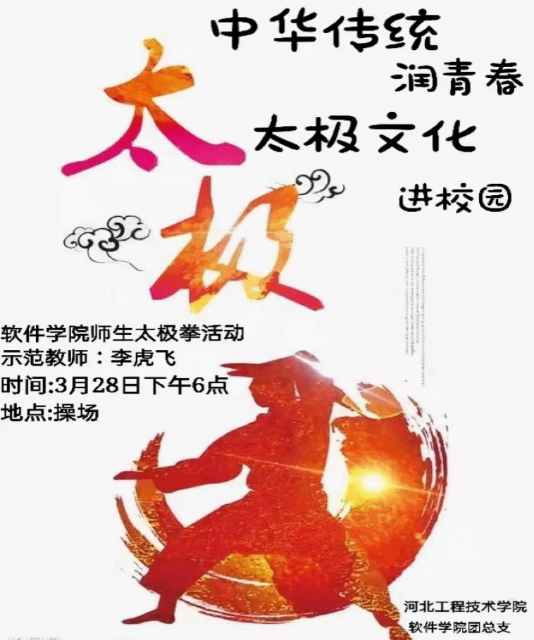 太极进校园活动是为了弘扬中华优秀文化,让员工学会太极拳技能,感受传统文化,获得运动的乐趣,达到锻炼的意志,培养品德,提高素质,健体,养生的要求,实现增强员工体质,提高运动技能,塑造健全人格的目的。