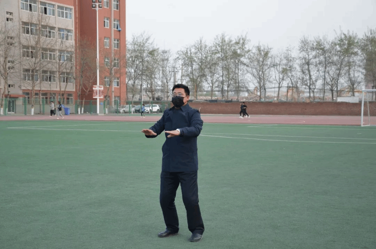 同学们按行列站好队,开始准备活动,学习太极拳二十四式中前三式——起势,左右野马分鬃,白鹤亮翅。在李虎飞老师细心地教导下,大家的动作由刚开始的僵硬不协调越发的流畅行云流水。期间,老师积极与同学们互动,手把手教太极拳二十四式中的云手,欢声笑语飘荡上空,在其乐融融的氛围中,时间悄然而过。最后大家合影,纪念这一次的太极拳活动。