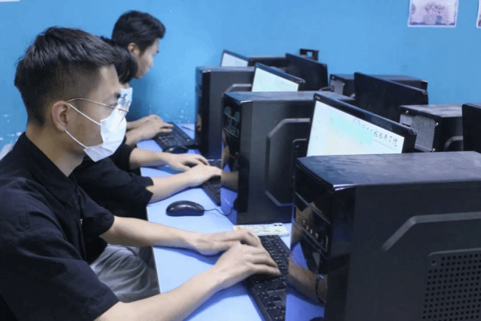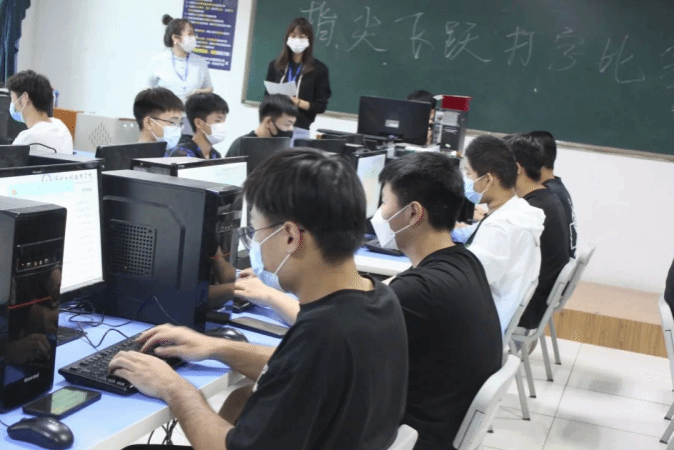 赛前,工作人员提前进场开始布置打字内容,并检查比赛场地及设施调试。参赛人员使用金山打字通进行比赛。比赛开始后,同学们全部进入了状态,目光紧盯屏幕,极其认真并伴随着敲击键盘的声音,教室内充满紧张的气氛,参赛选手们都屏气凝神,全神贯注。