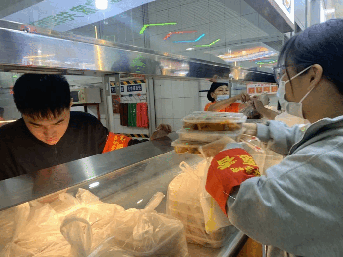 在开学季的志愿服务中,李龙同学在前期担任巡楼组工作,后主要投入到送饭工作中。他和老师对接宿舍订餐数据,组织志愿者进行送餐。结束后,还组织送餐志愿者对隔离楼层的垃圾进行清理,保持楼道卫生清洁,给同学们一个良好的隔离环境。