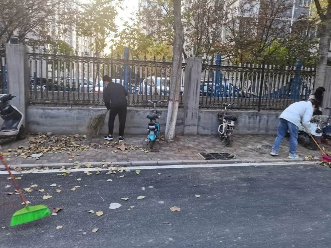 组织人对参与人员做了详细明确的分工,志愿者们个个热情高涨,不怕脏累,有的拿扫帚扫堆起来沉积的落叶,有的用手捡起来路边的垃圾。一个人拿着扫帚,另一个就用工具承装,志愿者们在互帮互助中感受集体的力量。在阳光下志愿者们认真清扫,良好的精神风貌为清凉的秋天增添了一份温暖。最后整个校园焕然一新,清扫活动在洁净的校园中结束。