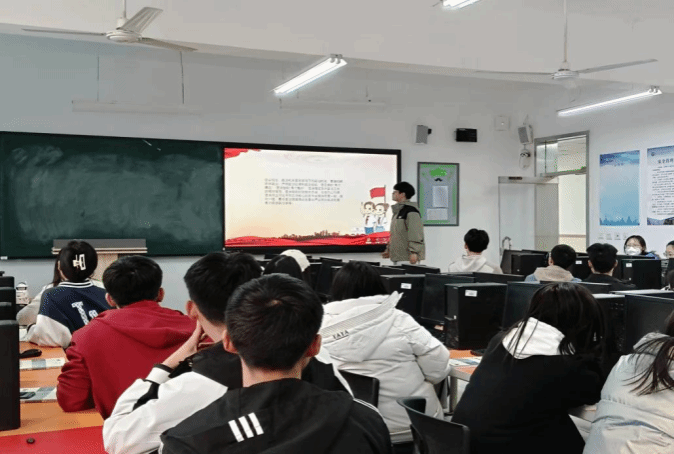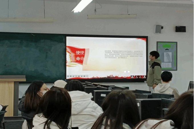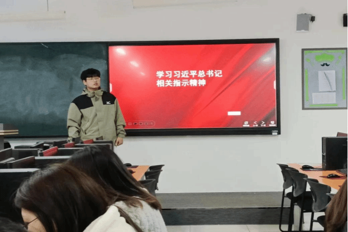 班会由班长巩佳乐同学主持,他通过PPT给同学讲解。本次主题班会主要讲学习习近平总书记相关指示精神。告诉我们要认真学习贯彻习近平总书记的重要讲话精神,加强思想政治教育,深入学习贯彻党的二十大精神,忠实履行职责使命,正确行使民主权利,以实际行动践行对党绝对忠诚。