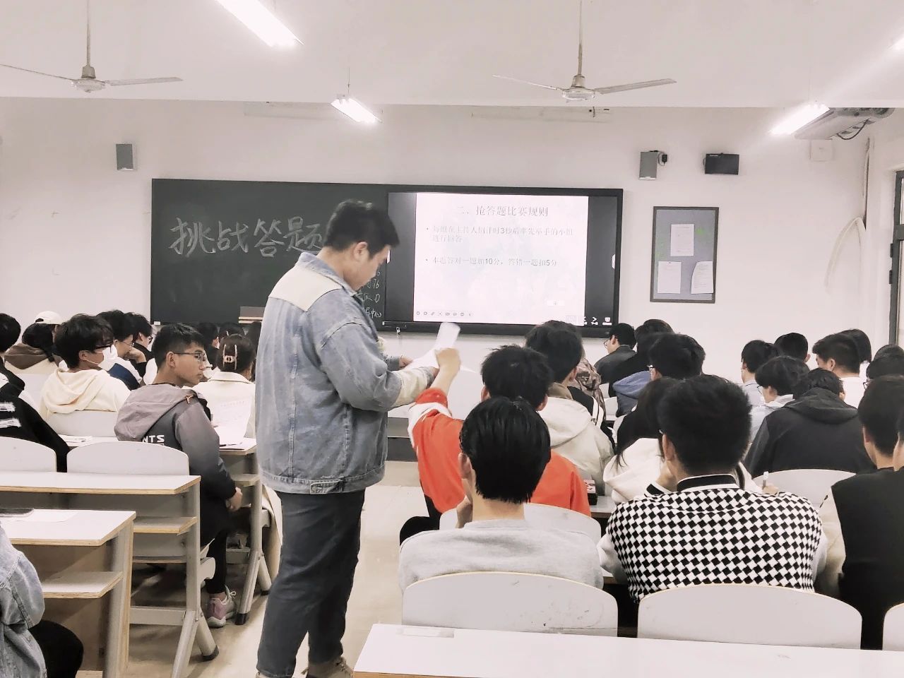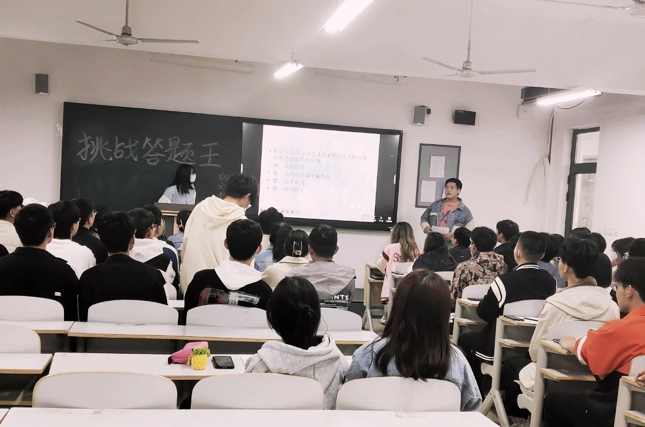 比赛过程中,参加挑战答题的选手,用自己独特的见解和丰富的知识储备给出问题的答案,由工作人员统计得分。现场气氛热烈、掌声雷动,选手们以饱满的热情、高昂的情绪进行答题,每一支队都能团结合作,每个人的脸上都呈现出高昂的斗志、兴高采烈的神情。特别是抢答题环节,同学们争先恐后地踊跃发言,营造出“你追我赶”的热闹氛围,欢呼声接连不断,举手之迅速、答题之准确、理解之透彻。