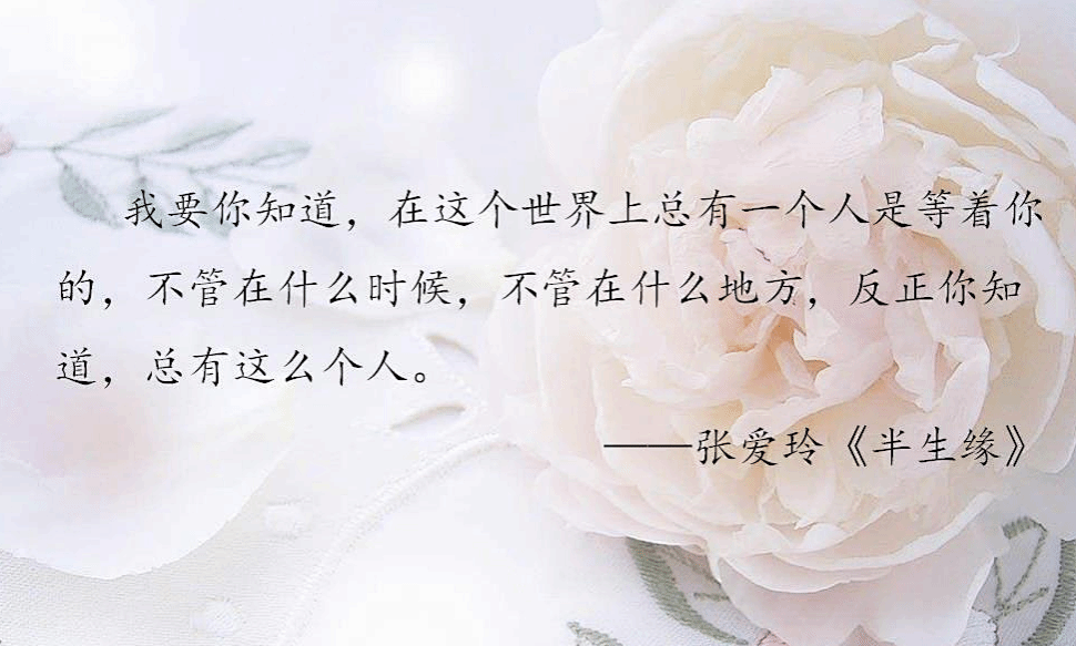 “命运真的是很奇妙的东西。有些人一生一世,彼此不会认识,相距咫尺却行如陌路。而有些人却如命中注定似的要在一起,躲都躲不掉。”“人生最大的幸福,是发现自己爱的人正好也爱着自己。我要你知道。这个世界上会有一个人永远等着你。无论什么时候,无论你在什么地方,反正你知道总会有这样一个人。”“对过有一个黄色的大月亮,低低地悬在街头,完全像一盏街灯。今天这月亮特别有人间味。它仿佛是从苍茫的人海中升起来的。”“她竭力把那种荒唐的思想打发走了,然而她知道它还是要回来的,像一个黑影,一只野兽的黑影,它来过一次就认识路了,咻咻地嗅着认着路,又要找到她这儿来了。”“时代的车轰轰地往前开。我们坐在车上,经过的也许不过是几条熟悉的街道,可是在漫天的火光中也自惊心动魄。就可惜我们只顾忙着在一瞥即逝的店铺的橱窗里找寻我们自己的影子——我们只看见自己的脸,苍白,渺小;我们的自私与空虚,我们恬不知耻的愚蠢——谁都像我们一样,然而我们每人都是孤独的。”