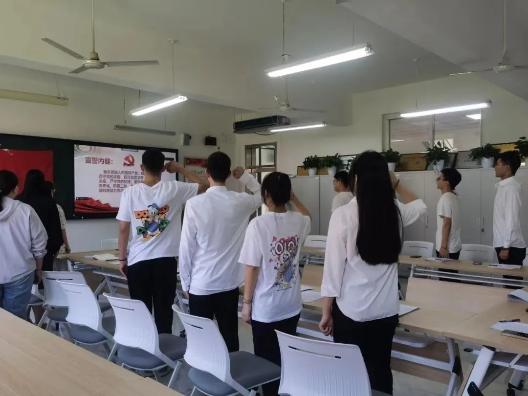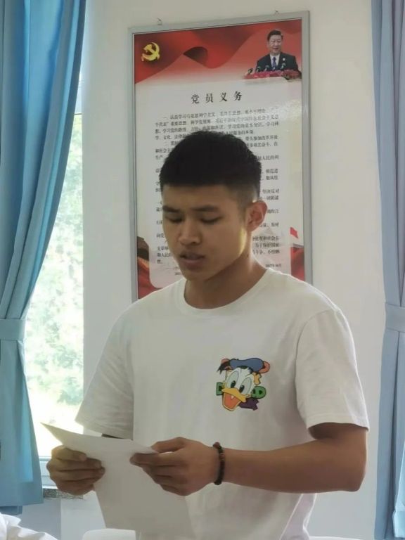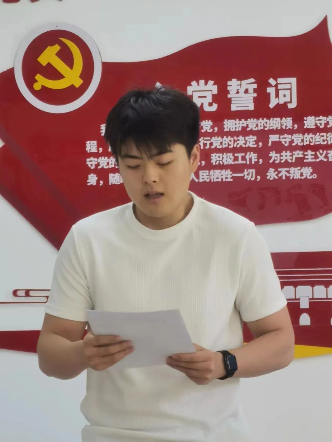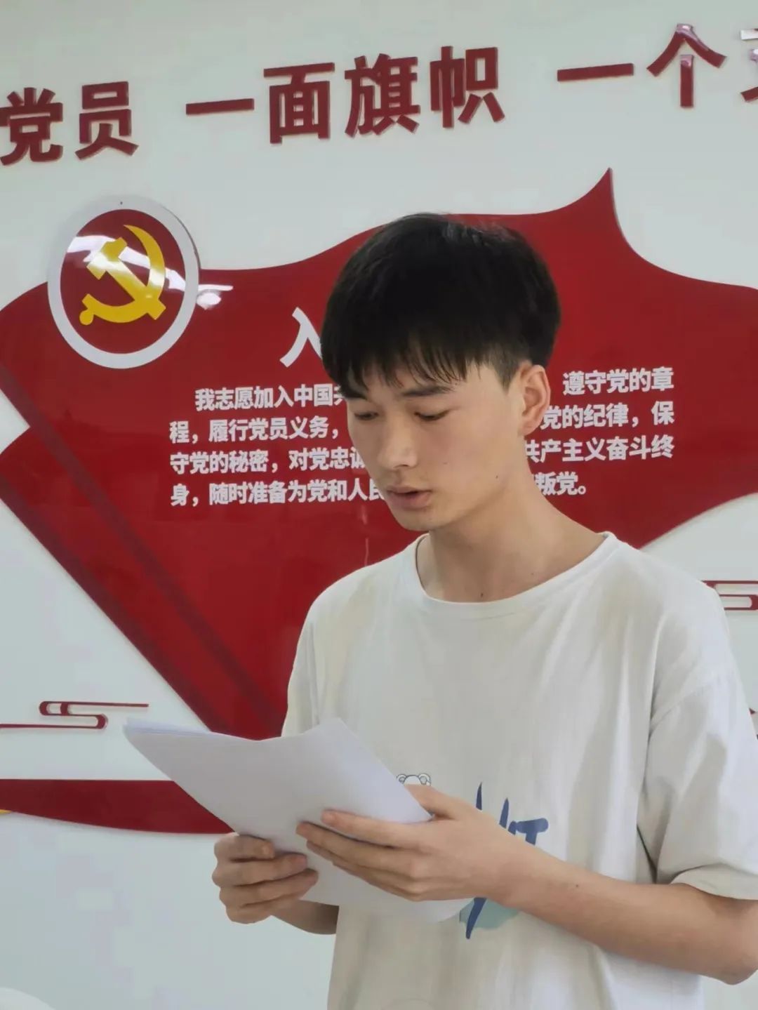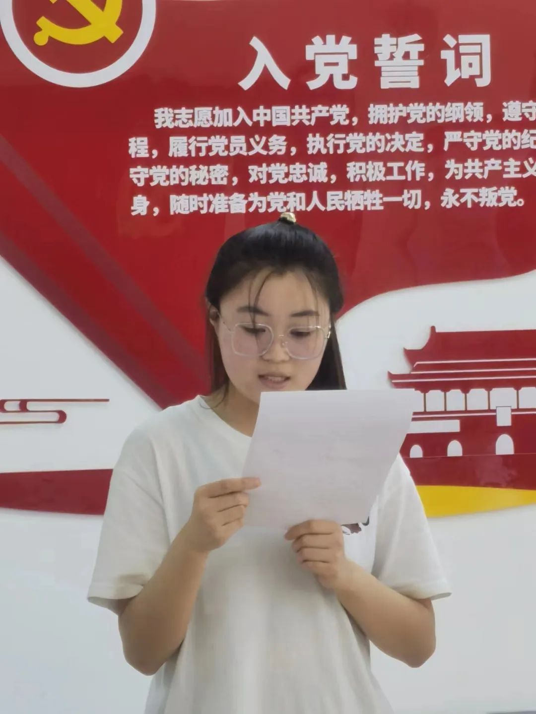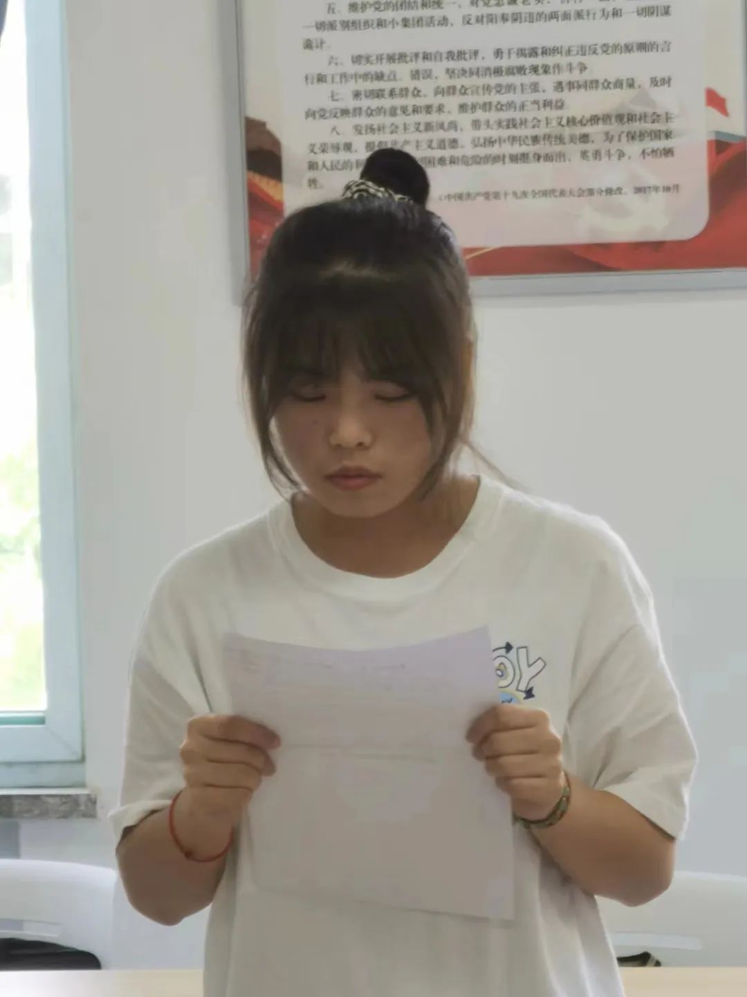 新接收预备的党员宣读入党誓词,使他们牢记党对自我的要求,时刻以誓言来激励自己,在今后对党誓言坚贞不屈,百折不挠地予以恪守。张静同志宣读了支部大会决议,表示同意吸收程文静等12名同志成为中共预备党员。