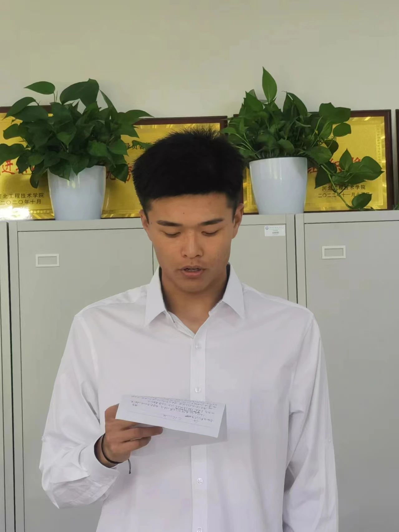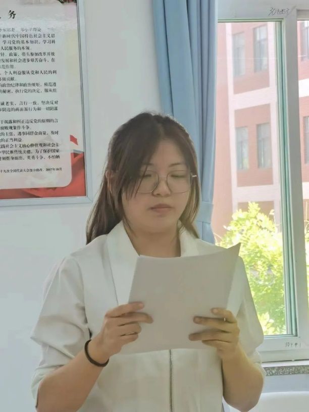 最后,党总支书记王亚杰同志对本次会议进行了总结,向12名吸收为预备党员的同志表达了殷切的希望并提出了两点要求。第一,做好自己的本职工作,团结同学,互帮互助,在预备党员期间起到较好的作用,加强群众基础,严于律己,时刻以一名合格的党员要求自己;第二,要不断进行学习,谨记“腹有诗书气自华”,做到以初心,敬党心;以誓言,敬理想;以努力敬时光。
