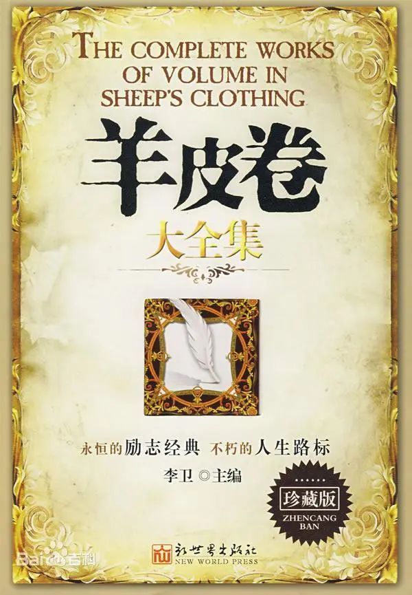 《羊皮卷全书》,该书的作者奥格·曼狄诺便是这样的人类多年难得一见的精英。此书附会了一个耶稣降生的故事,人们可以信其有也可以信其无,说在那个时代流传下来十道羊皮卷,里面记载了经商与致富的秘诀,谁要是得到了它,谁就会成为富可敌国的人。经过几世单传之后,才于近年被允许公诸于众。该书一经问世,英文版当年销量突破100万,迅速被译成18种文字在世界各地广为流传。