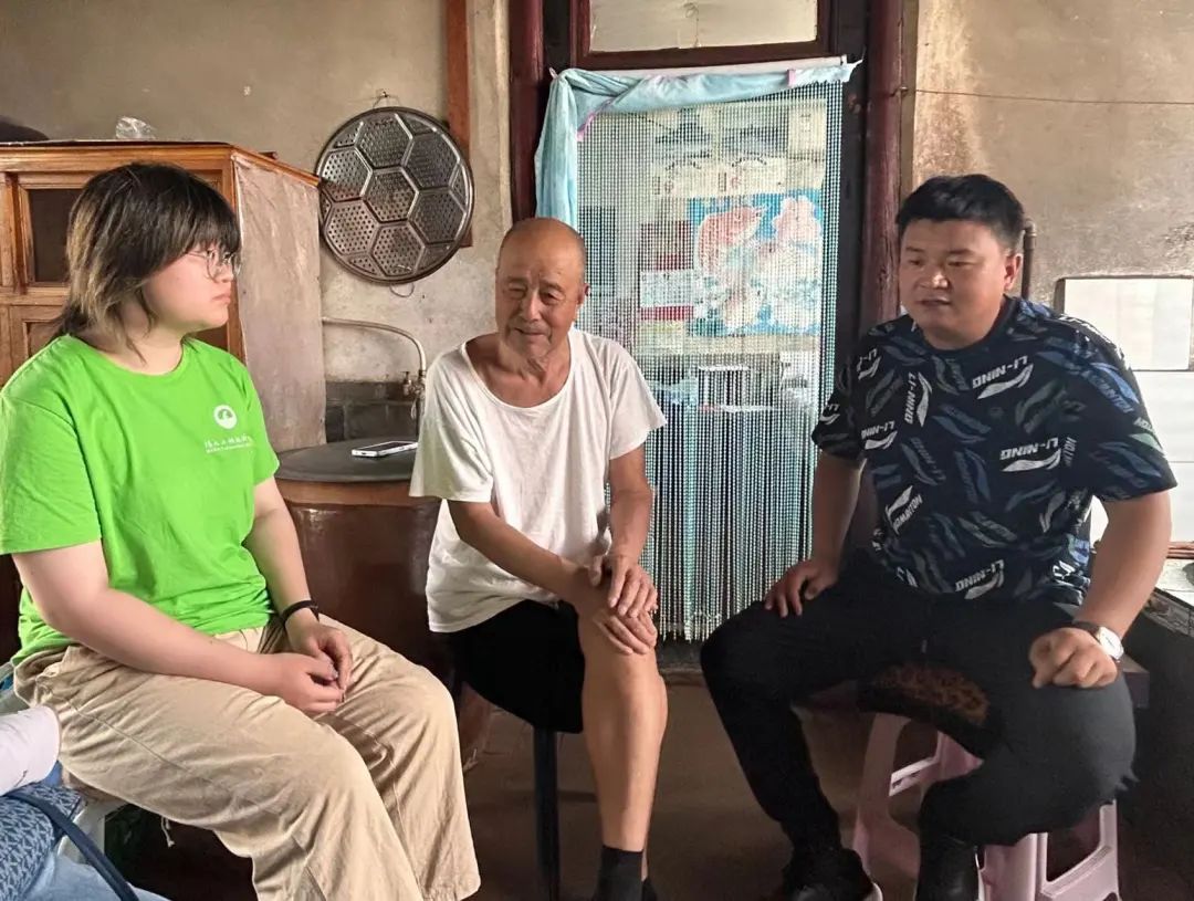 采访之初,我们为张爷爷准备了一些生活物品,向他表达出我们的尊重和关心,让他感受到我们的关注和重视。采访当天,夏日炎炎。张爷爷不在意夏日的暑气,早早的在院子里期待我们的到来,与我们讲述他的参军生活。他和老伴居住在一栋砖砌的农房里,院子里杂草丛生,水池里长满青苔。这次访谈中,我们与退伍老兵进行面对面的交谈,聆听他的峥嵘过往,感受他事迹中蕴含的不朽精神。不断学习先辈的优秀品质和宝贵的精神,汲取红色故事中蕴含的宝贵知识和历史经验。