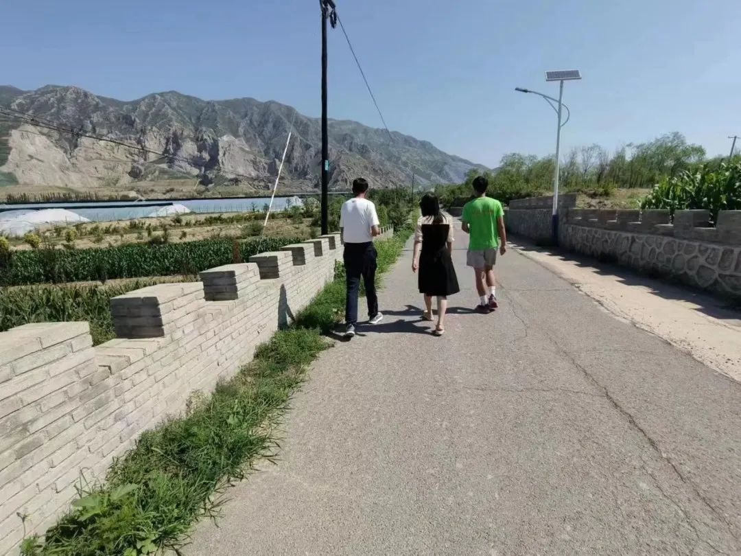 在采访完之后暑期实践团队成员跟随村长来到村中进行实地观摩。