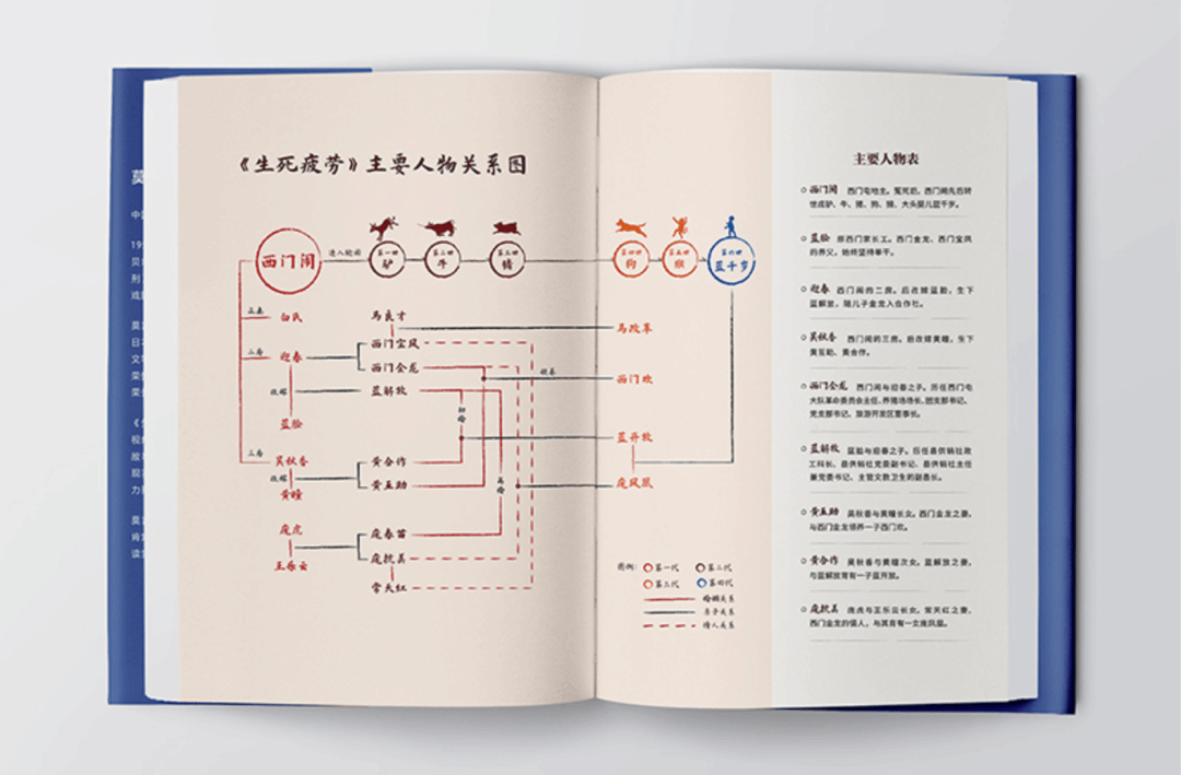 在小说中,被冤杀的地主西门闹经历了六道轮回,变成驴、牛猪、狗、猴,最终又转世为一个大头婴儿,滔滔不绝地讲述着自己每世的离奇经历。小说通过六道轮回的想象跨越生与死,悲悯着历史变迁之中无常的命运,也歌颂着生存于这片土地上的农民们世代相继、生生不息的执着生命力。