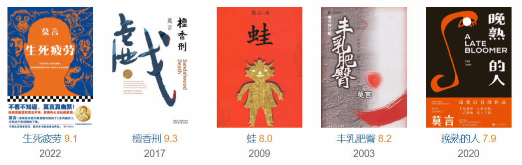 其作品深受魔幻现实主义影响,代表作有《红高粱》《檀香刑》《丰乳肥臀》等,其中《蛙》获第八届茅盾文学奖。2012年10月11日,莫言获得2012年诺贝尔文学奖,颁奖词称莫言“用魔幻般的现实主义将民间故事、历史和现代融为一体”。2013年10月30日,中国首家培养网络文学原创作者的公益性大学“网络文学大学”开学,莫言担任该校的名誉董事长。2014年12月,莫言先后获颁香港中文大学、澳门大学荣誉文学博士学位 。据不完全统计,莫言的作品目前至少已经被翻译成40种语言。