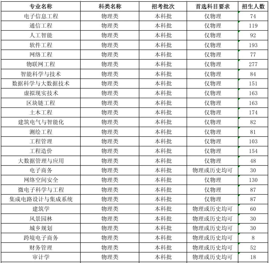 招生计划——山东