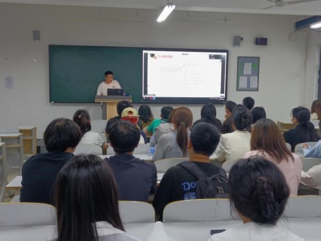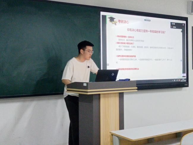 活动伊始,主持人对两位学长的到来表示热烈欢迎,并介绍了考研对于个人发展和职业规划的重要性。首先,李梦涵学长对考研的动机、目标院校的选择、备考计划的制定等方面进行了详细阐述,并根据自己的成绩进行分析,他强调,考研需要坚定的决心和明确的目标,选择与努力同样重要,要做好自身定位;不要偏科,要有科学的备考计划和高效的学习方法。