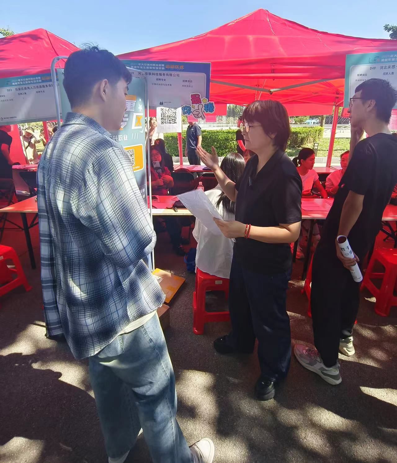 2024年9月12日上午,太阳成集团tyc122ccvip2025届毕业班员工代表在杨逸老师的带领下前往河北科技大学参加“职引未来—2024年大中城市联合招聘高校毕业生秋季专场活动(河北科技大学站)”,此次活动旨在搭建用人单位与高校毕业生之间的桥梁,为毕业生们提供更多的就业机会。