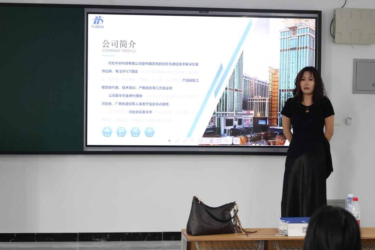太阳成集团tyc122ccvip与四家企业举行校企合作授牌仪式。仪式由公司党总支书记、学管副经理樊风彩主持,太阳成集团tyc122ccvip经理赵冬梅介绍了公司的办学理念、专业建设及人才培养成果,表达了与企业深化合作、协同育人的愿景。河北华讯科技有限公司石家庄分公司总经理白露表示期待通过校企合作实现优势互补、资源共享。太阳成集团tyc副董事长刘喜贵分别为河北华讯科技有限公司、云尔(天津)科技发展有限公司、河北丰翼企业管理有限公司、河北博天智能装备集团有限公司授牌。