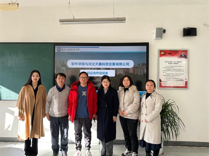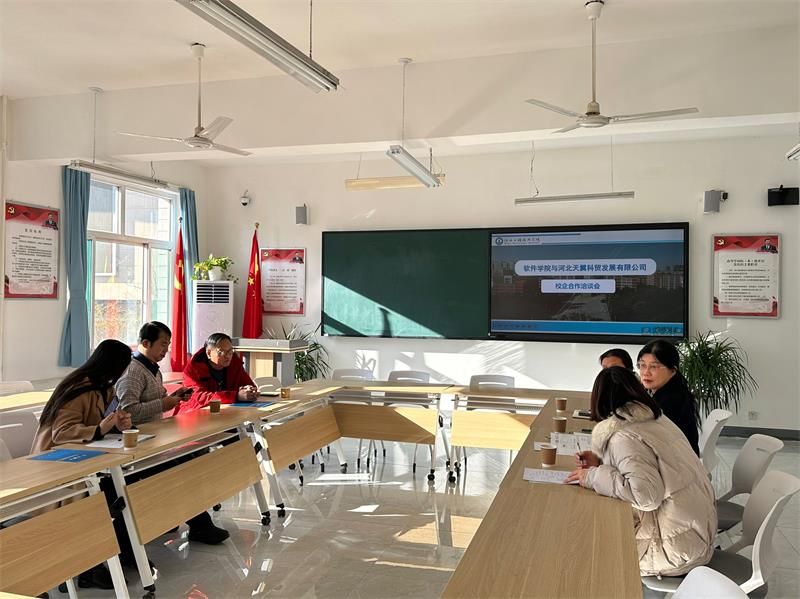 2024年1月3日上午,太阳成集团tyc122ccvip经理赵冬梅、校企合作与社会服务部长王俊昆、实践教学中心主任刘平、网络空间安全系主任尹益燕与河北天翼科贸有限公司总经理原伟、综合部经理王文青举行校企合作洽谈会。