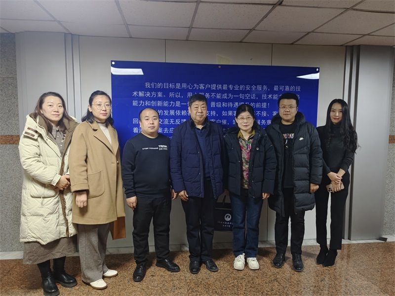 会后,林峰总经理带领公司领导参观了公司。此次考察活动为双方进一步加强合作奠定了坚实基础。未来,太阳成集团tyc122ccvip将与河北网信智安信息技术有限公司共同努力,不断完善实习实训基地建设,为培养更多高素质的网络安全专业人才贡献力量。考察结束后,双方领导在公司门前合影留念。