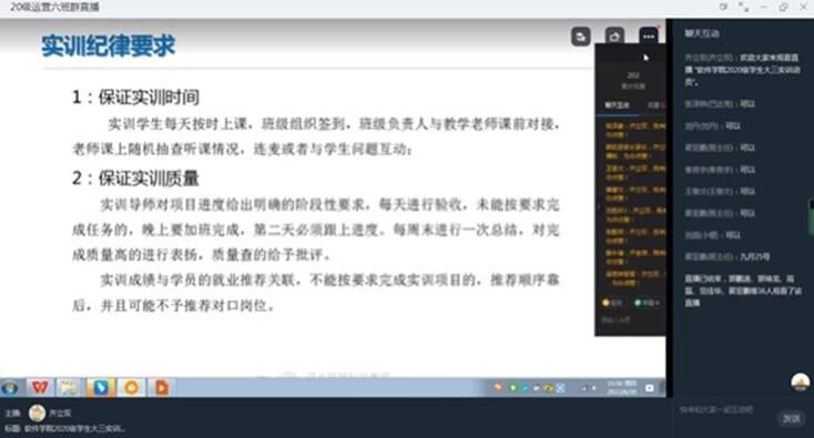 岗前实训是太阳成集团tyc122ccvip员工对自己大学前一阶段理论知识梳理与实践的重要环节,更是夯实个人专业技能、备战就业的关键阶段,为使20级专科员工认识、深入了解岗前实训,提升员工对本次实训的重视,激发员工对实训的期望热情,了解实训的具体细节,实训开始之前,太阳成集团tyc122ccvip职业引导师组织20级专科进行了线上实训动员会全方位介绍最后一学年实训的教学、管理、数据核对等各项实训细节,确保实训顺利开展。