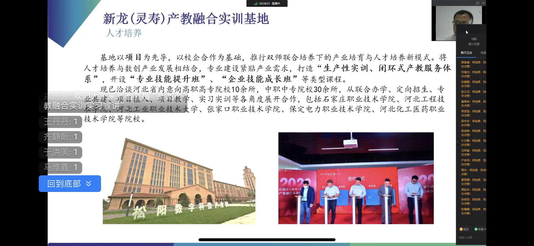 通过新龙产教融合实训实习宣讲活动,同学们拓宽了对本专业的认知范围。其次基地学习、基地实训、基地就业,可兼顾公司的日常安排,满足员工多重职业方向选择的需求。希望同学们抓住机会,迈出走向社会的第一步!
