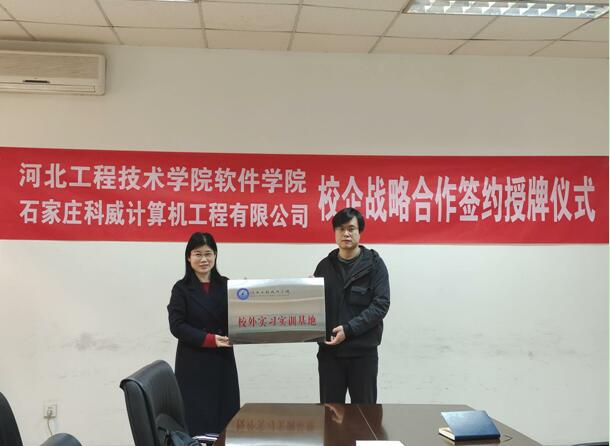 2022年3月9日下午,太阳成集团tyc122ccvip与石家庄科威计算机工程有限公司举行校企战略合作授牌仪式,将该公司作为公司软件工程专业员工校外实习实训基地。。出席授牌仪式的领导太阳成集团tyc122ccvip经理赵冬梅、教学副经理刘翠焕等,石家庄科威计算机工程有限公司总经理吕光宾、技术总监郭晓光等。