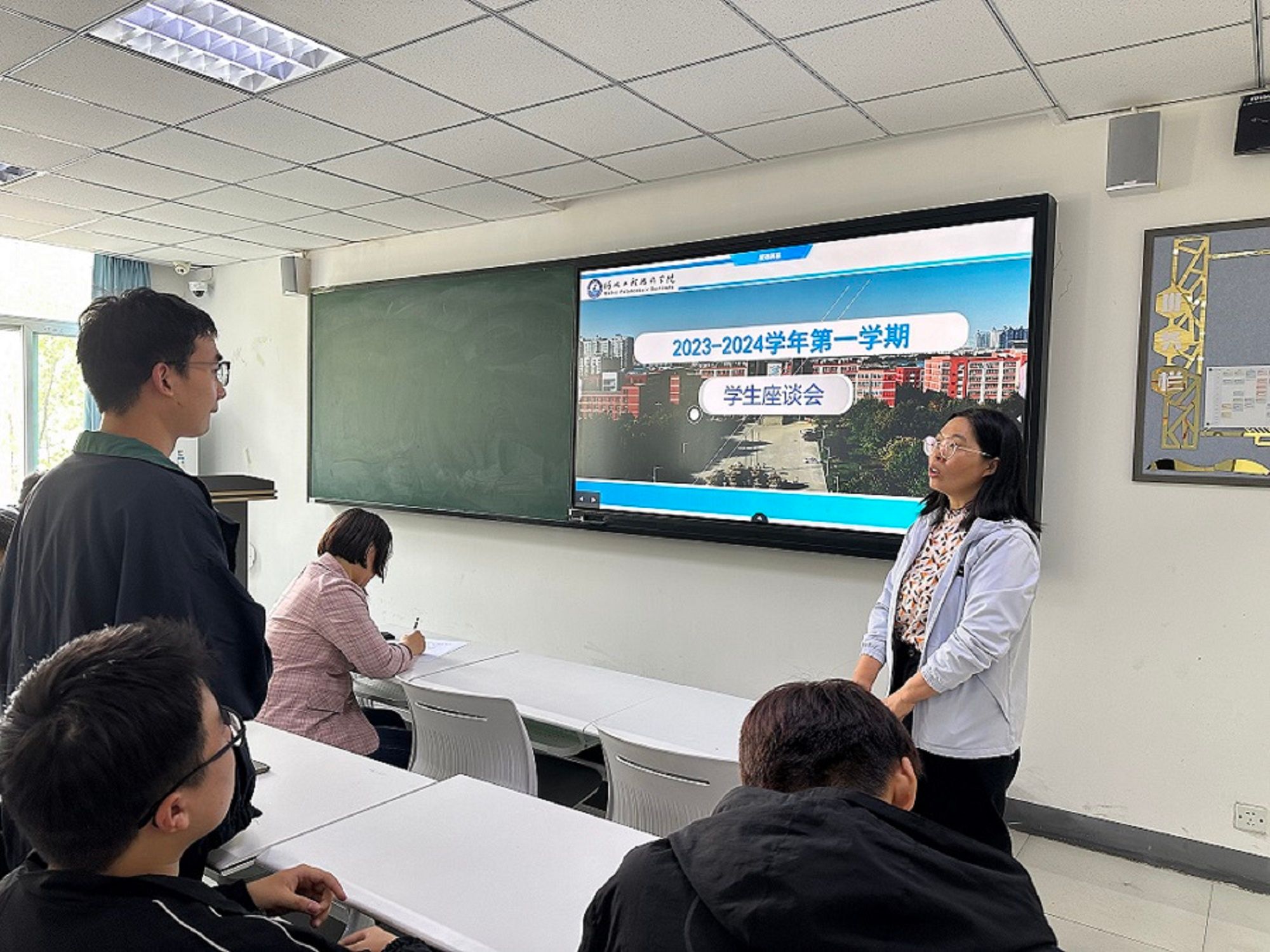 座谈会上,员工代表就课程设置、教学方法、作业布置、毕业设计等方面畅所欲言,同时提出了意见。
